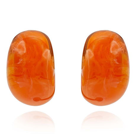 Orange Marbled Resin Semi Hoop Clip on Earrings