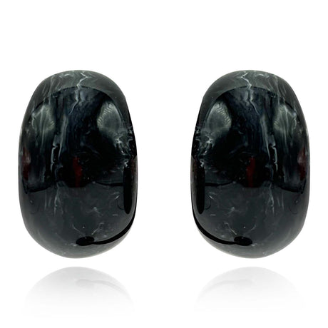 Black Marbled Resin Clip on Semi Hoop Earrings