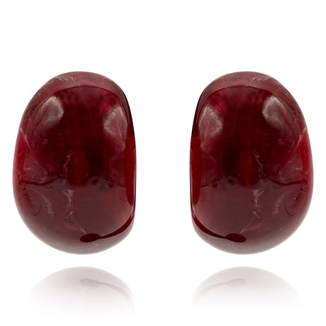 Ruby-Burgundy Marbled Resin Semi Hoop Clip on Earrings