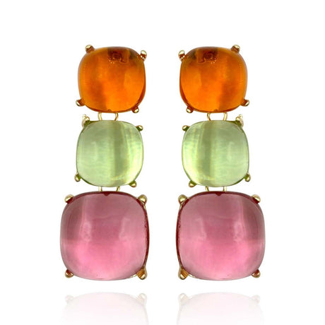 Esme Stud Earrings, Emerald Green, Pink & Gold