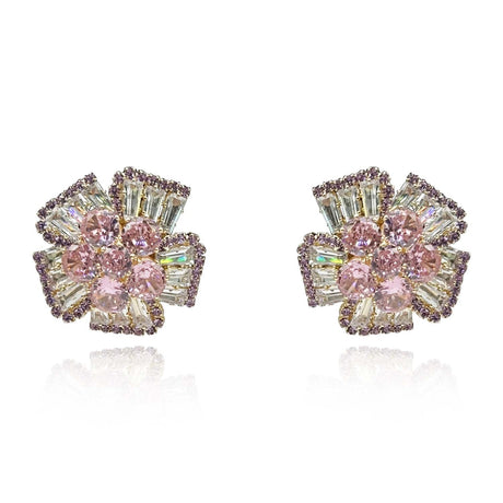 Pink Sapphire and Baguette Crystal Clip on Button Earrings