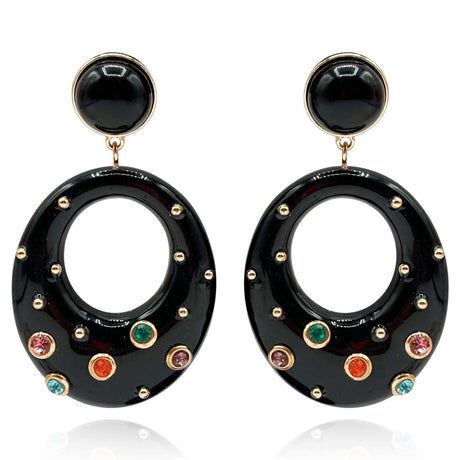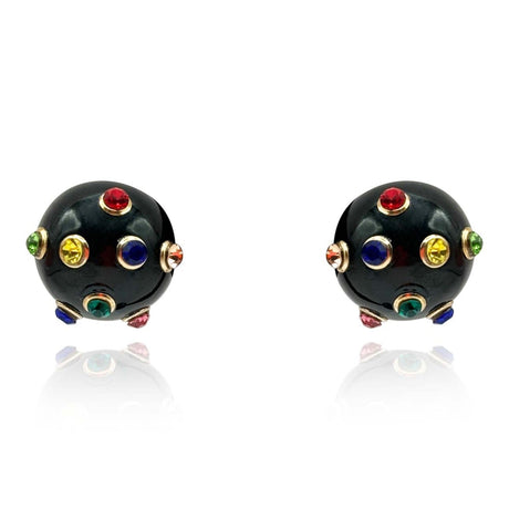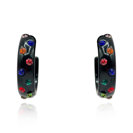 Multi-Color Crystal Gemstone Clip on Earrings Set in Blackened Rhodium