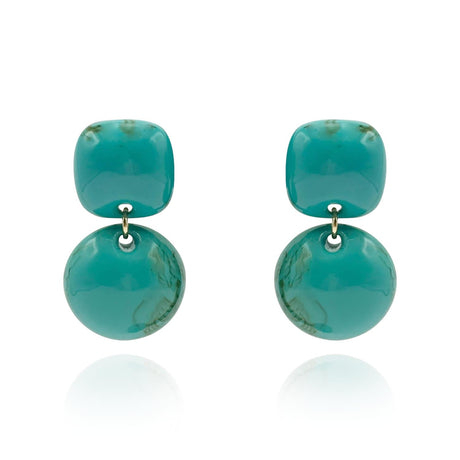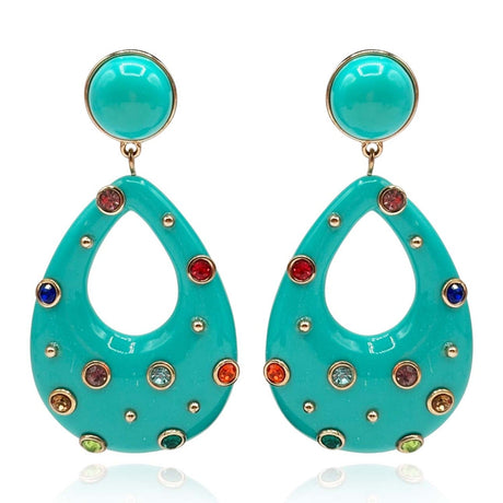Tortoise Resin Hoop Earrings With Faceted Turquoise Glass Pear Stones