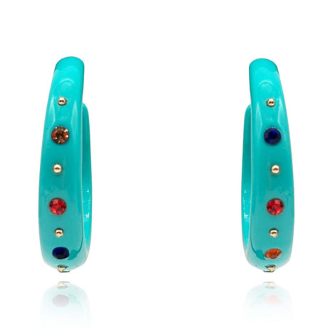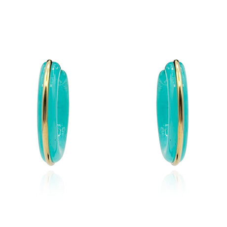 Turquoise Resin Hoop Earrings With Gold Stripe