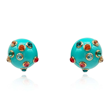 Esme Stud Earrings, Sapphire Blue, Emerald Green & Gold