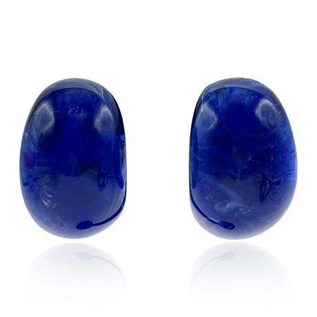 Navy Marbled Resin Semi Hoop Clip on Earrings