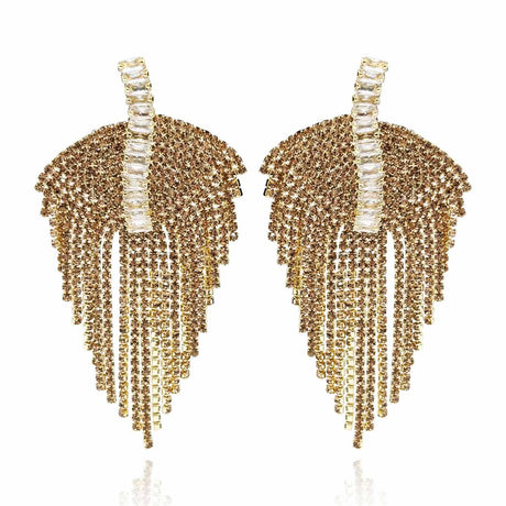 Large Pear-Faceted Champagne Crystal Drop Earrings in Brass With Gold Plating