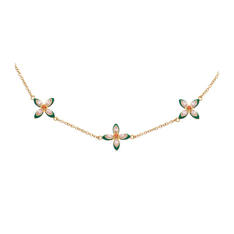 Lucky Clover Choker Necklace Emerald Enamel, Blush Pink & Gold