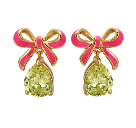 Amelia Bow Earrings Bright Pink, Lime Green & Gold