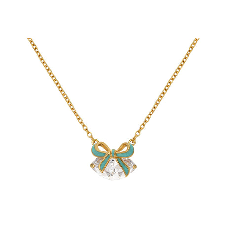 Amelia Bow Necklace, Emerald Green, Blush Pink & Gold