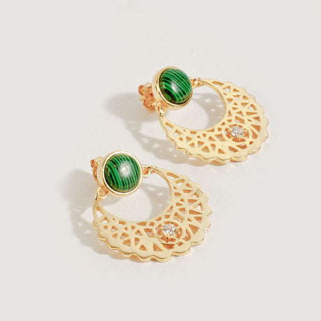 Cradle Moon With Malachite & Crystal Stud Earrings