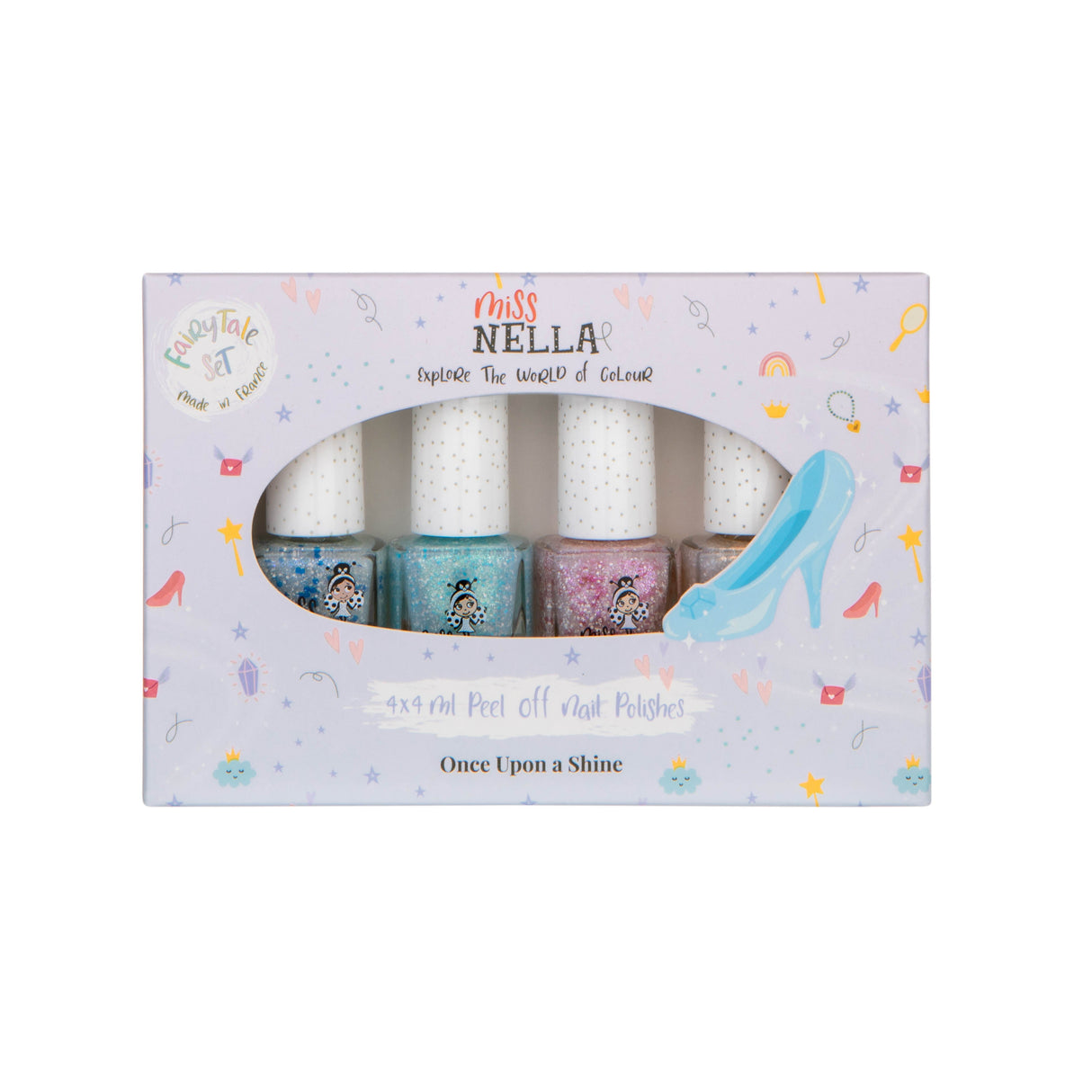Description - Pack of 4 Miss Nella 4ml non-toxic, odour free, peel off, water-based nail polishes.