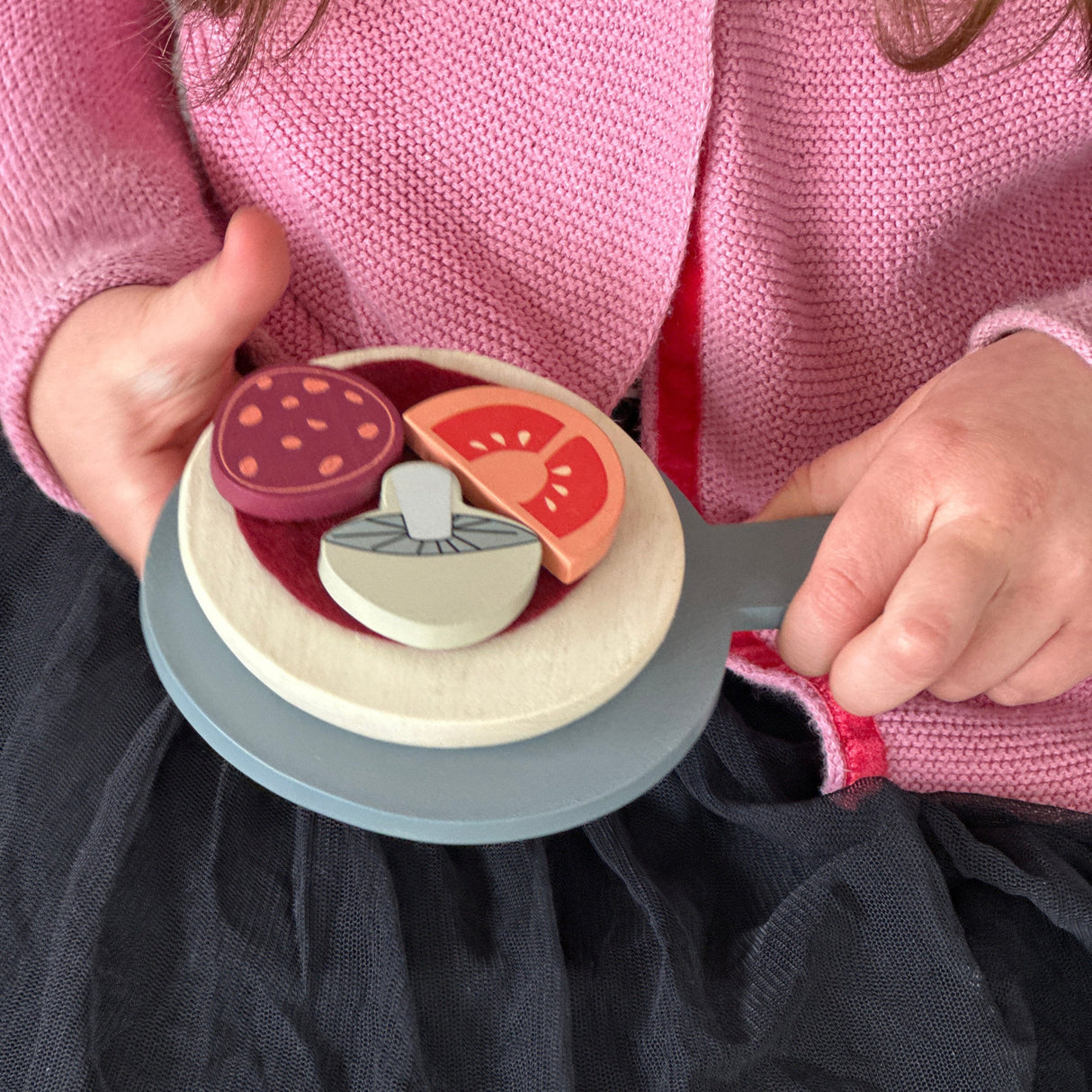 This pretend play, role play toy encourages children to make up stories and situations where they can pretend to be just like mum and dad, creating their favourite toppings, cooking their pizza, and serving it up for mealtime.