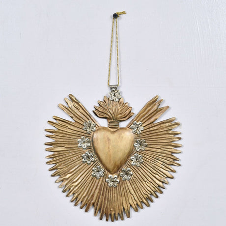 Large Antique Gold Milagro Heart " Sunburst Flame"