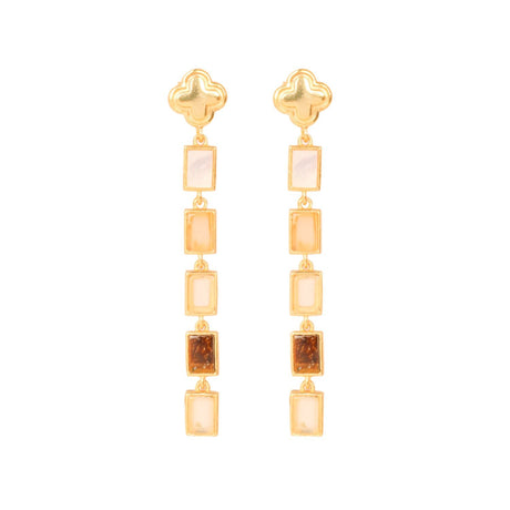 Rectangular Earthy Tone Drop Clover Stud Earring
