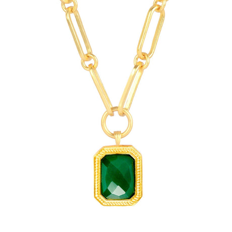 Paperclip Chain Rectangular Green Emerald Crystal