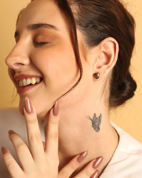 Peach Moonstone Studs Earring "Stellar Elegance"