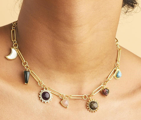 Stellar Elegance - 7 Healing Stones Link Chain Necklace