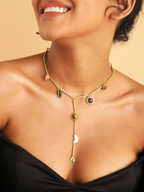 Stellar Elegance - 7 Healing Stones Drop Necklace