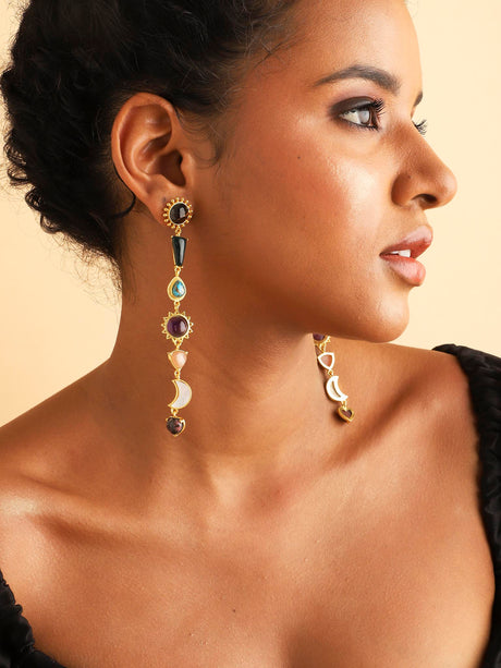 Stellar Elegance - 7 Healing Stones Multilayer Drop Earrings