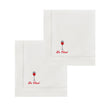 Add a unique and thoughtful touch to your home decor or entertaining essentials with this set of embroidered reusable red wine napkins! Add your own text and make it personal. Perfect for adding some personal flair and easy elegance to any occasion. These cocktail napkins are made from soft, absorbent cotton with a linen-like texture that is both durable and eco-friendly. At 40 x 40 cm, they are just the right size for any dinner party, cleaning up spills.