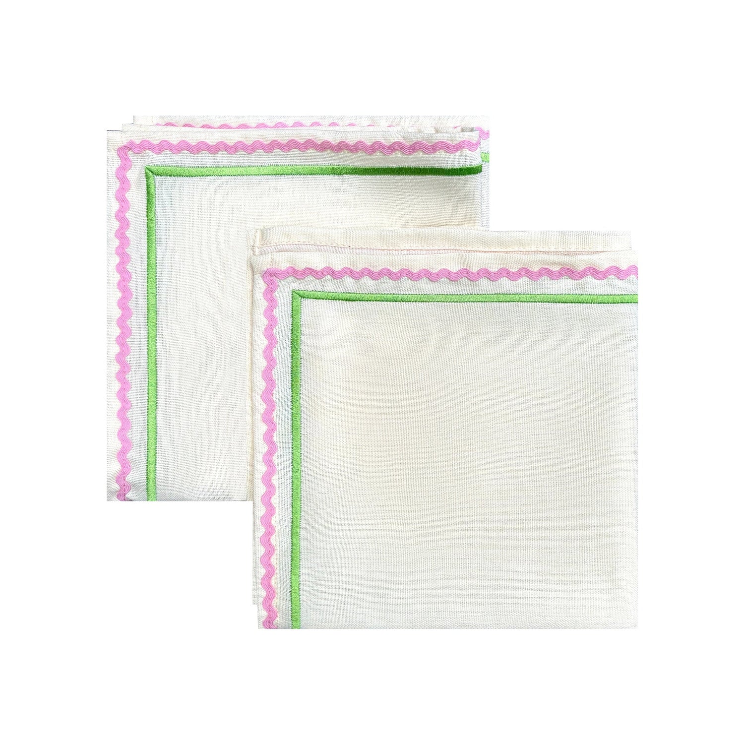 Ric Rac Linen Napkins | Green & Pink | Set of 4