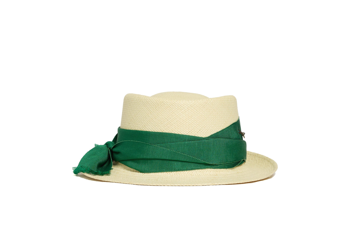 Oaks is hand embellished in our Sydney studio with luxuriously soft vintage grosgrain ribbon in a stunning shade of emerald green.