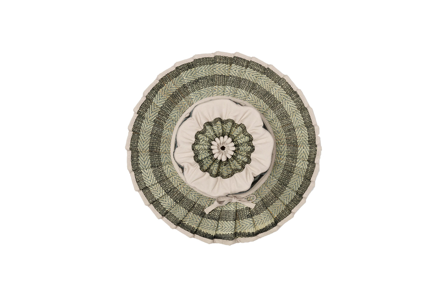Victoria features thick ink-black threads woven in diagonal stripes contrasted with dark fern-green thread stripes, through its natural grass fibre base, with bisque-coloured fabric trimming.