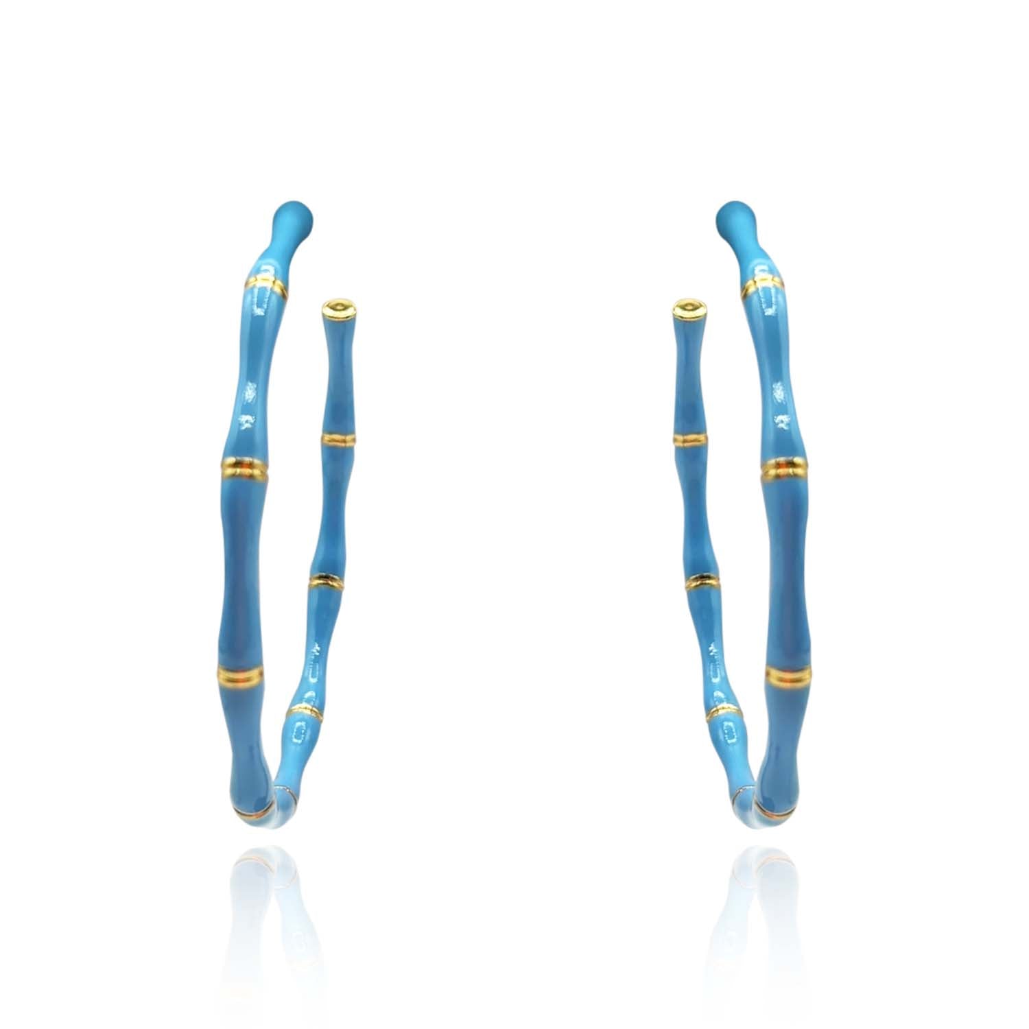 Turquoise Enamel and Gold Plated Bamboo Earrings