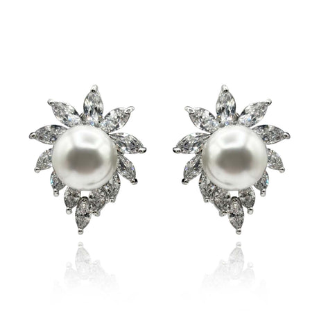 Shell Pearl and Marquise Diamond Clip on Earrings