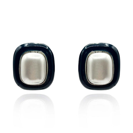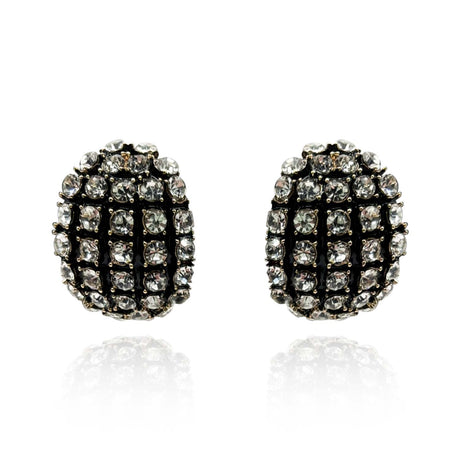 Elsa Black Enamel and Crystal Scalloped Button Clip Earrings