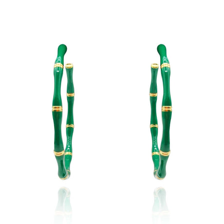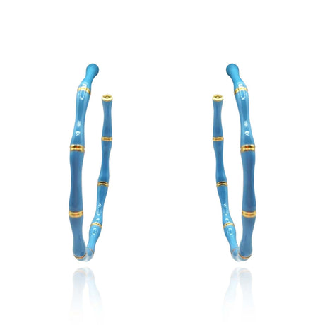 Turquoise Enamel and Gold Plated Bamboo Earrings