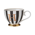 Crafted from new bone china, this teacup has a black and white striped pattern on its outer surface that boasts sophistication. The reflective gold-coated base complements its matching gold letter H on the surface, adding a personalised touch to your morning routine or tea time.