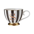 Crafted from new bone china, this teacup has a black and white stripes pattern on its outer surface that boasts sophistication. The reflective gold-coated base complements its matching gold letter "S" on the surface, adding a personalised touch to your morning routine or tea time.