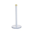This kitchen roll holder is an ideal solution to prevent paper towels from unravelling and tearing off smoothly. Made using robust metal, this roll holder exhibits a white marble finish and is supported by a round weighted base for one-hand use.