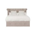 The Edison mink double ottoman bed has a brushed velvet upholstered headboard in diamond pattern tufting that creates an elegant visual appeal. Its rolled top is slightly curved from the sides to form a wingback style. The natural wood frame will provide long-lasting durability while padding across all sides gives it an aesthetically pleasing look.