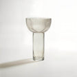 Handcrafted from grey-finish glass, this decorative vase is sculpted by skilled artisans that makes a unique display with its sculptural, fluted design. This modern vase has a glazed glass top shaped into a bowl, connected to a ribbed cylindrical base. The contrasting texture and muted shade make it an ideal choice for contemporary interiors.