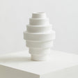 Made from finest quality durable ceramic, this large modern vase features matte white finish. The layered design of this white vase is further enhanced by the ridges around its surface offering a textured geometric accent piece ideal for adding depth and sophistication to your home or office space. This ceramic vase is a chic way to bring some natural charm by displaying lively plants in it.