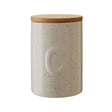 This round coffee canister is made from robust dolomite and topped with an airtight lid made from renewable bamboo. A subtle speckle pattern decorates its exterior and adds a minimal decorative touch. The letter embossed detail gives it a textured look and makes it easy to identify the contents.