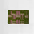 Gold and pink stripes are formed in horizontal and vertical formations against a green background. The result is a contemporary pattern that adds a hint of geometric style to the hallway. The water-resistant coir material is hard-wearing and easy to clean, while its black Polyvinyl Chloride backing makes it non-slip.
