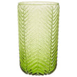 These highball glasses have a captivating green hue that brings a touch of sophistication to any dining table. The embossed patterns not only add to the look but also improve the grip.