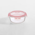 ""This 620ml round glass container has a pink PP lid with clip locks and a silicone seal that keeps the contents safely stored. The BPA free lid is airtight, making it ideal for food storage."