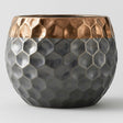 Its dark silver and rich copper tones have a gently weathered finish that helps the planter to catch the light. The hexagonal honeycomb surface gives it a textured look while accentuating its curved lines. Style it with metallic toned textiles and lighting.