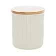 This small canister in cream finish will bring an elemental feel to the kitchen with minimal design. Made from robust stoneware, this canister boasts a textured surface with a ribbed effect, and the bamboo lid will keep its contents fresh and organised.