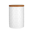 Formed from strong and hard-wearing dolomite, this storage canister is suitable for everyday use. Its matte white finish accentuates the triangular pattern which extends across its surface. The lid is made from sustainable bamboo wood, with a rubber seal which keeps its contents fresh. Use it in the kitchen to store tea, coffee, or sugar.