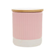 This tall two-tone canister in pink finish will bring an elemental feel to the kitchen with minimal design and cylindrical shape. Made from stoneware, this canister boasts a ribbed effect, and the bamboo lid will keep its contents fresh and organised.