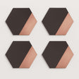 These stylish leather effect hexagonal placemats feature a contemporary two-tone design, combining a grey tone with elegant rose gold accents. Perfect for adding a modern touch to your dining table, they protect surfaces from spills and heat while elevating your decor with geometric flair.