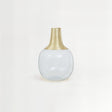 This bottle vase has a round silhouette, while the bottleneck in a gold finish creates a contemporary look. This decorative vase brings an element of grandiosity to its design with a contrasting body; a unique gold-finished brushed texture brings an exciting merger. Display floral arrangements in the living room with this glass vase or use it as a standalone decorative piece.