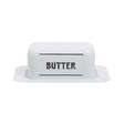Store and serve your butter with ease with this metal butter dish that comes in a crisp white colour with black lettering. It features a combination of a rectangular tray with a cover that fits perfectly on top and keeps the contents fresher for longer.