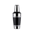 This cobbler cocktail shaker comes with three distinct parts - a 650ml tumbler, removable strainer, and lid which can be used for measuring units. It's made from tough stainless steel, and has a polished finish that complements the hammered black band across its middle. Rows of dots above and below the black add to its textured look.